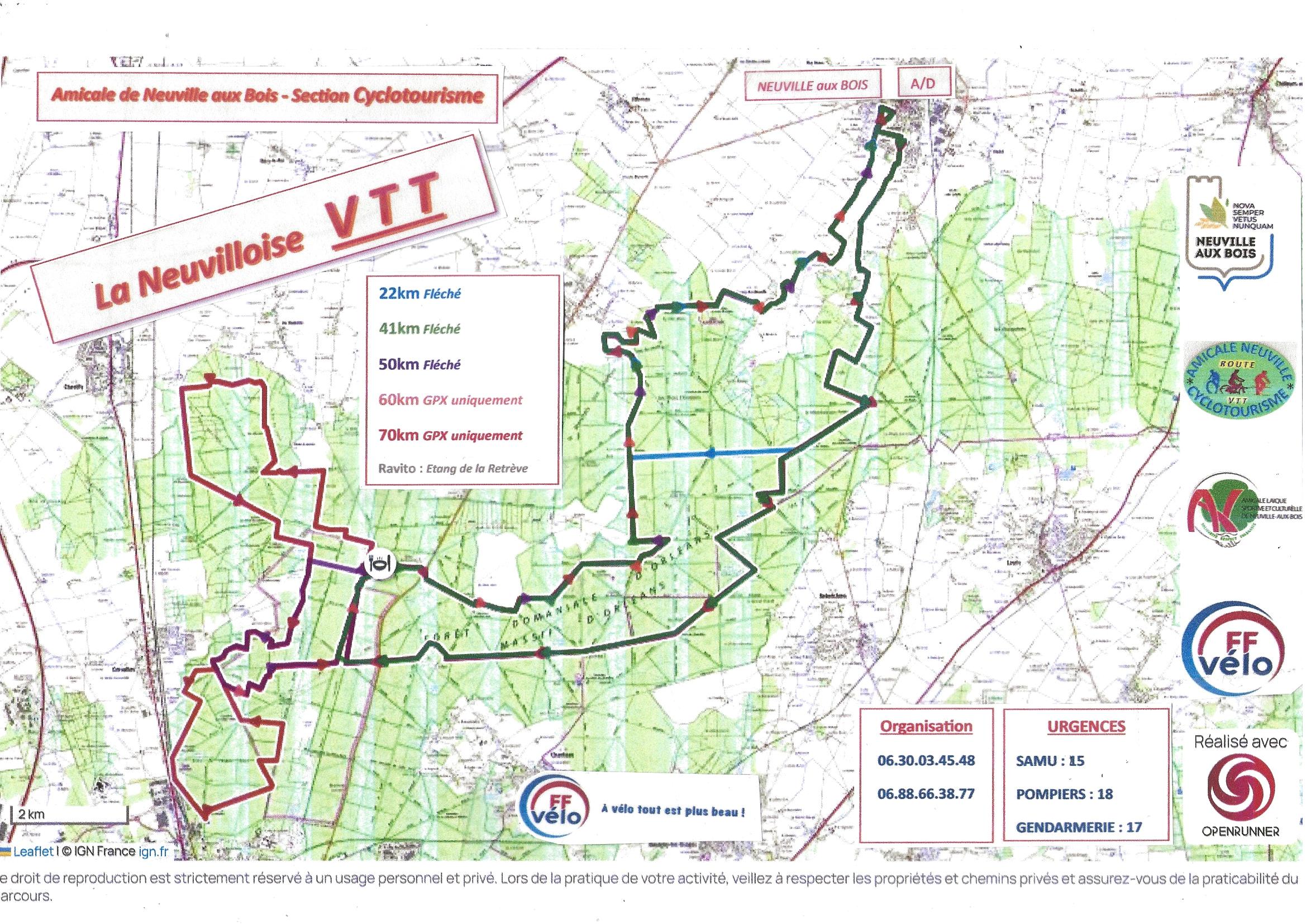 V.T.T: 22 - 41 - 50 - 60 - 70km (60 et 70km uniquement GPX)