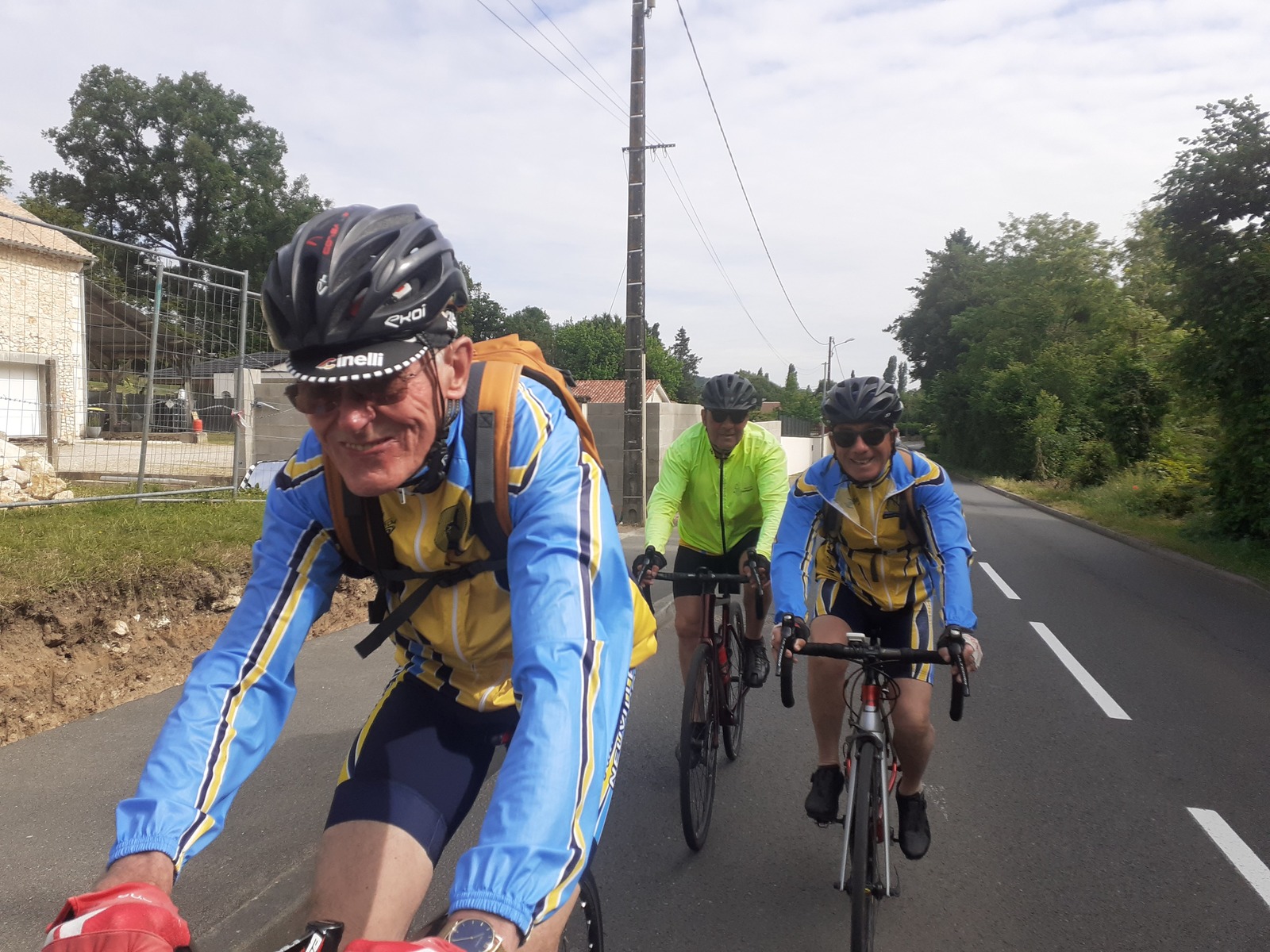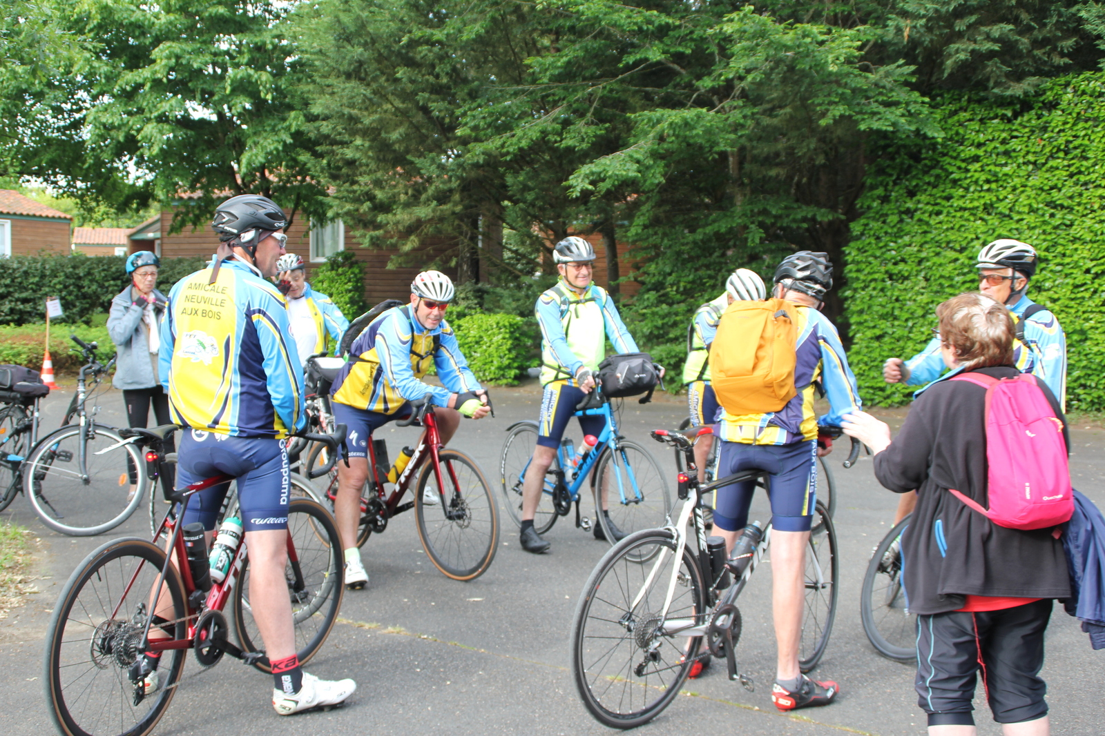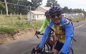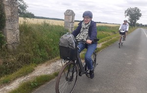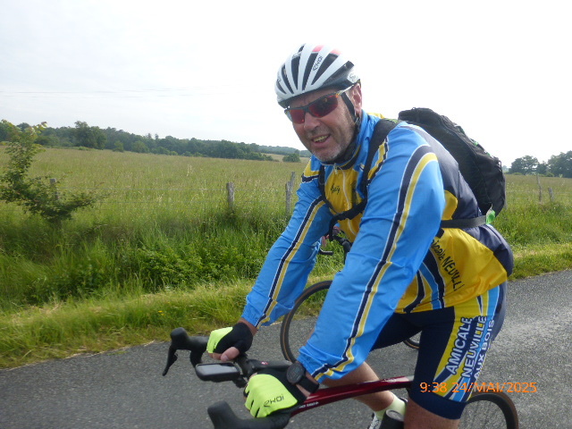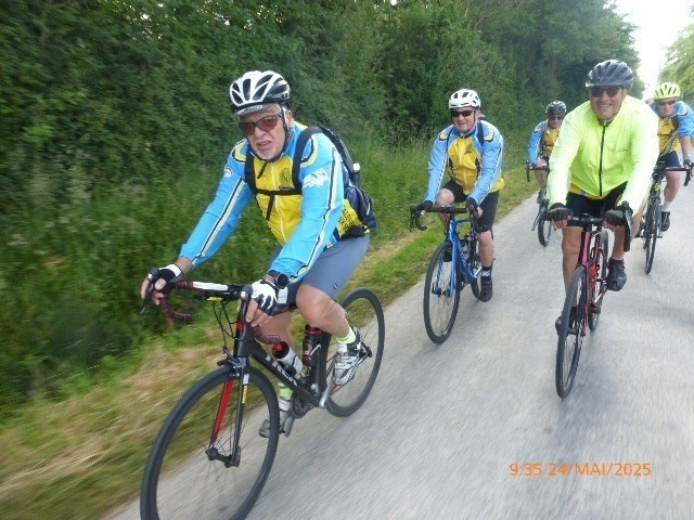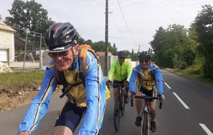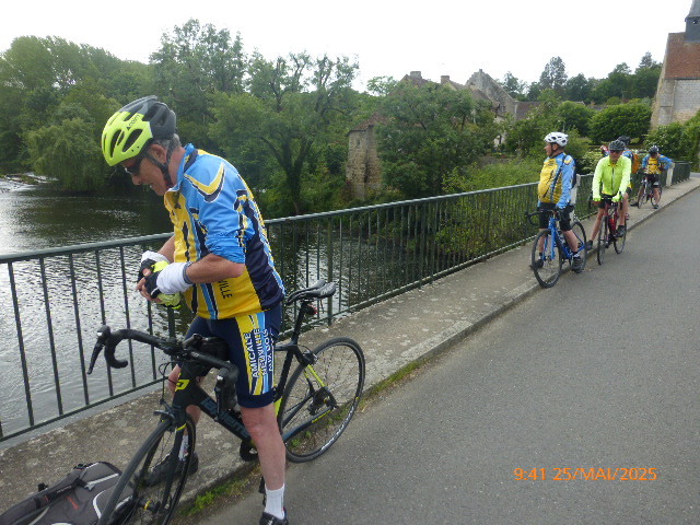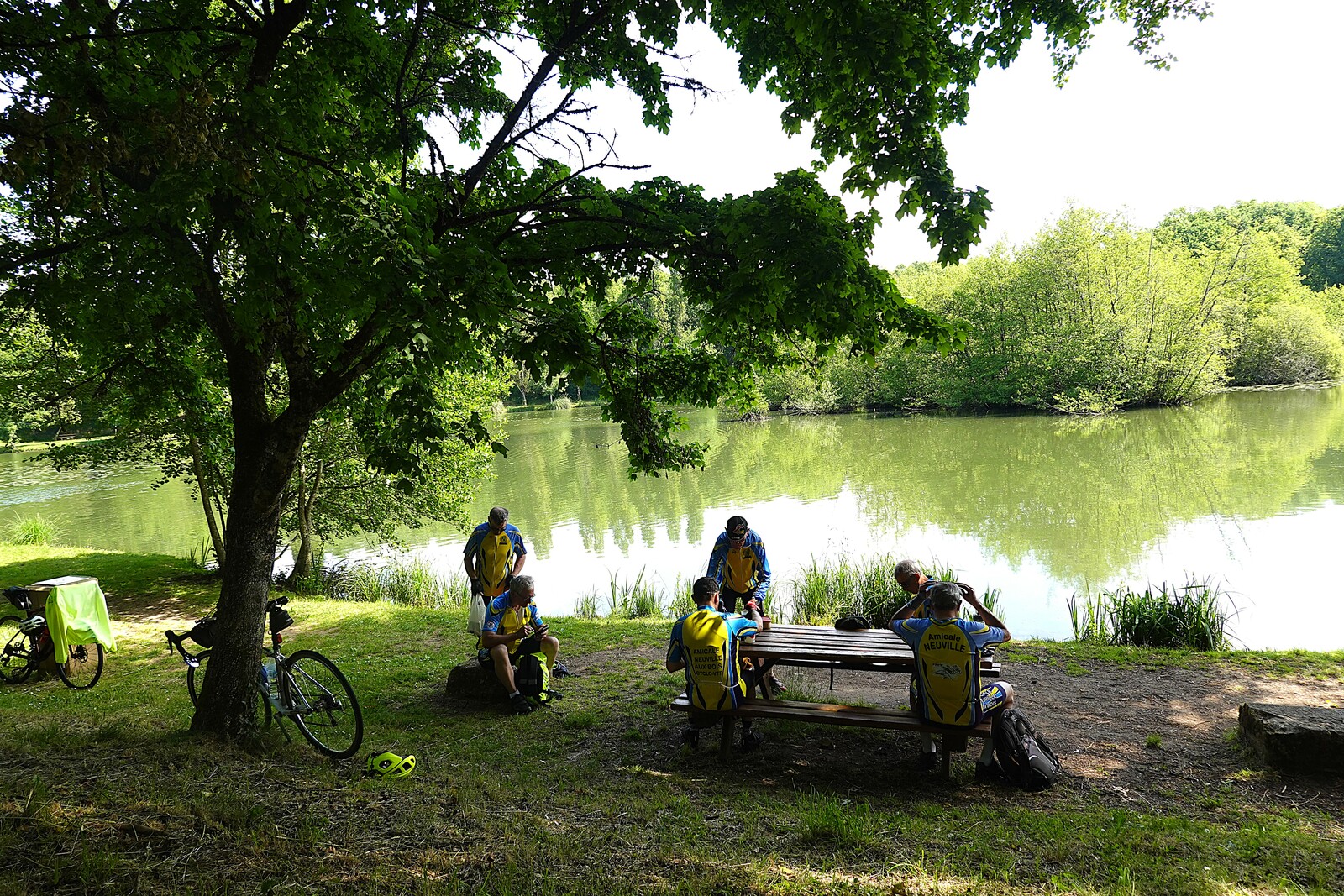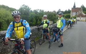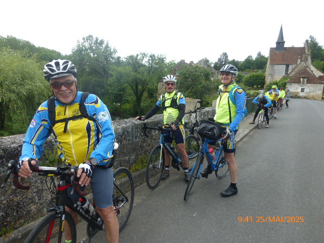 L'organisation se met en place. Le groupe 1 s'élance pour une belle partie de manivelle : 120 km et 1000m de dénivelé prévu. Yves, Jacky, Denis et Jimmes sont déjà partis. Le groupe 2 les suit pour 82 km avec Alain, Didier, Régis, Dominique, Nicolas, Jean-Pierre et Pascal. Traversée de Chauvigny et des ses châteaux (enfin ceux qu'ils restent) son marché et sa préparation de sa randonnée cyclotouriste prévu pour le lendemain ( dimanche 25 mai). Nous longeons la Vienne sans trop trouver de café pour notre pause matinale. Un insouciant Dolmen est là sur le bord de notre route. Civaux arrive avec son curieux cimetière entouré de pierres levées. Nous aurions pu croire être en Angleterre. Civaux son musée Archéologique et son église, nous ne pouvons nous y attarder, l'avant garder a repéré un café. Nous sommes tous déjà assis dans ce commerce aux multiples fonctions : café, épicerie, jeux, boulangerie, dépôt de gaz et retrait de colis. Il ne manquait plus que le retrait d'argent et la réunion du conseil municipal pour être au top. Si les chinois passent par Civaux nous allons être copiés... Repas pris un peu plus loin à Lussac-Les-Châteaux au bord d'un étang avec ombre et table de pic-nique. On peut difficilement faire mieux. Le retour se fait sur des routes tranquilles avec peu de circulation dans de bonnes conditions (température 14 à 20 ; soleil voilé et peu de vent). Pause à La Puye pour y voir passer le groupe 3 des 4C ( Catherine, Chantal, Claire, Cricri) et Véronique. Elles ont pris le temps de visiter le cloître de La Puye et son église. Retour commun et retrouvailles avec le groupe 1 sous la statue de GILBERT BÉCAUD à La Bussière qui avait élu domicile au calme dans cette commune après ses intenses tournées de part le monde. Le dernier groupe ( gr 4), les hédonistes se sont attardés à Chauvigny et à Lussac-Les-Châteaux ( Brigitte, Frédérique et Jean-Claude).
