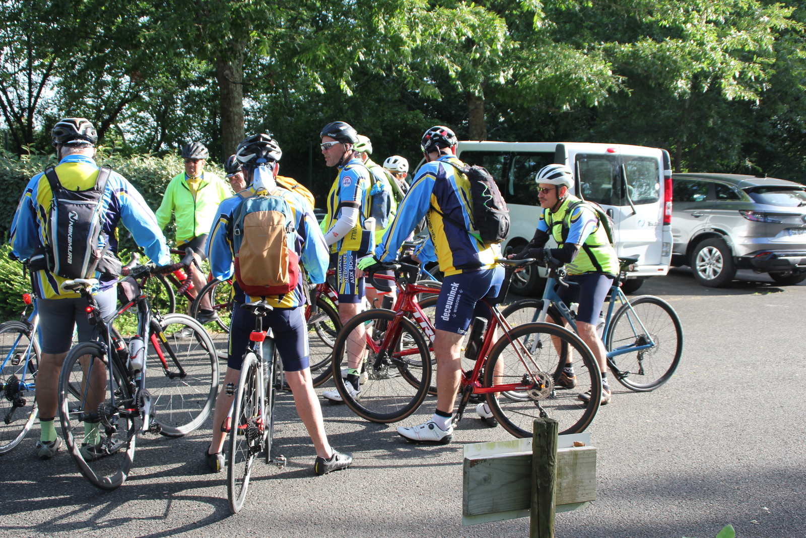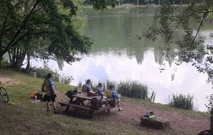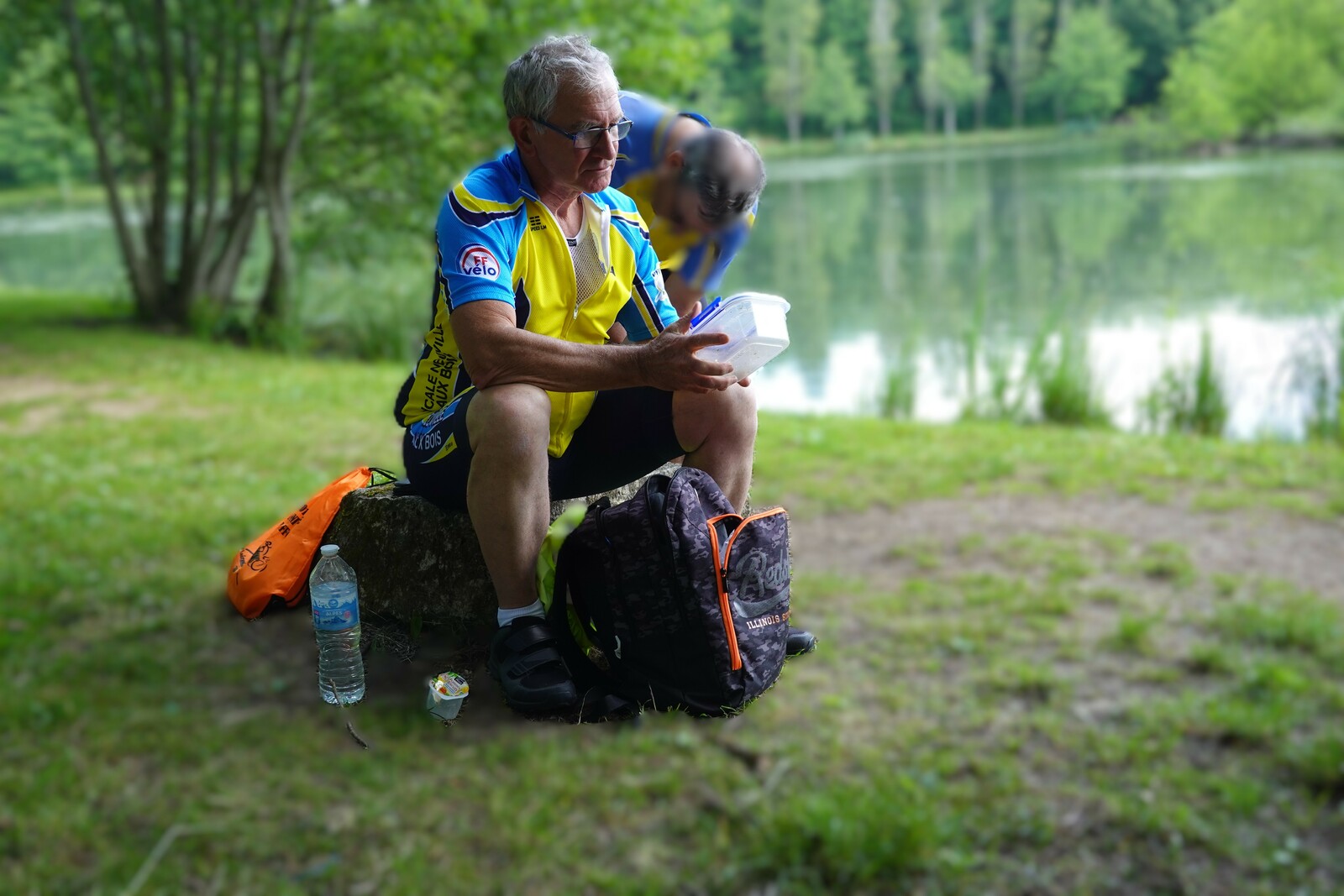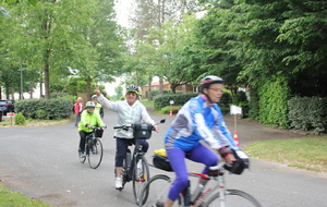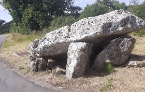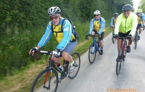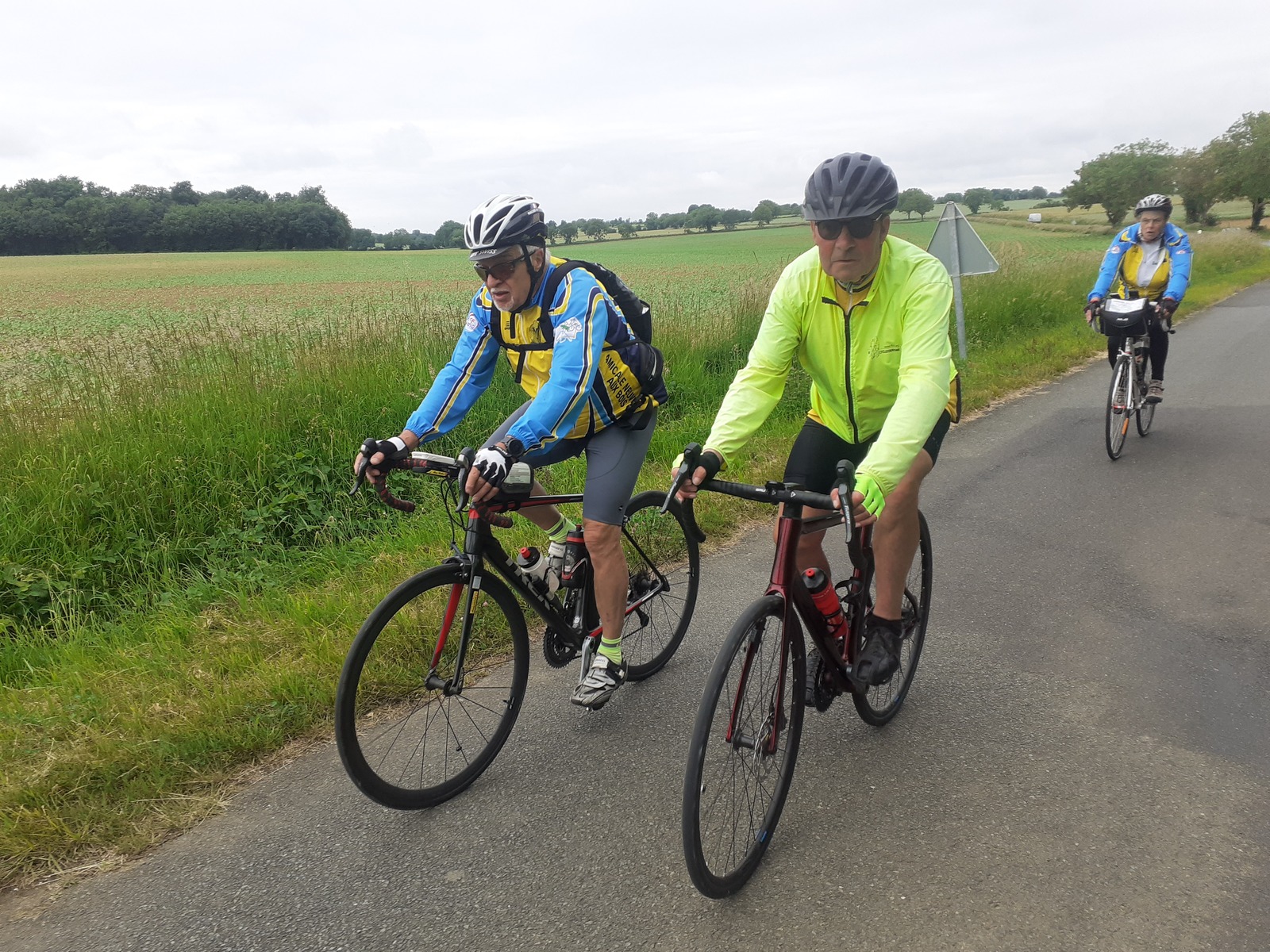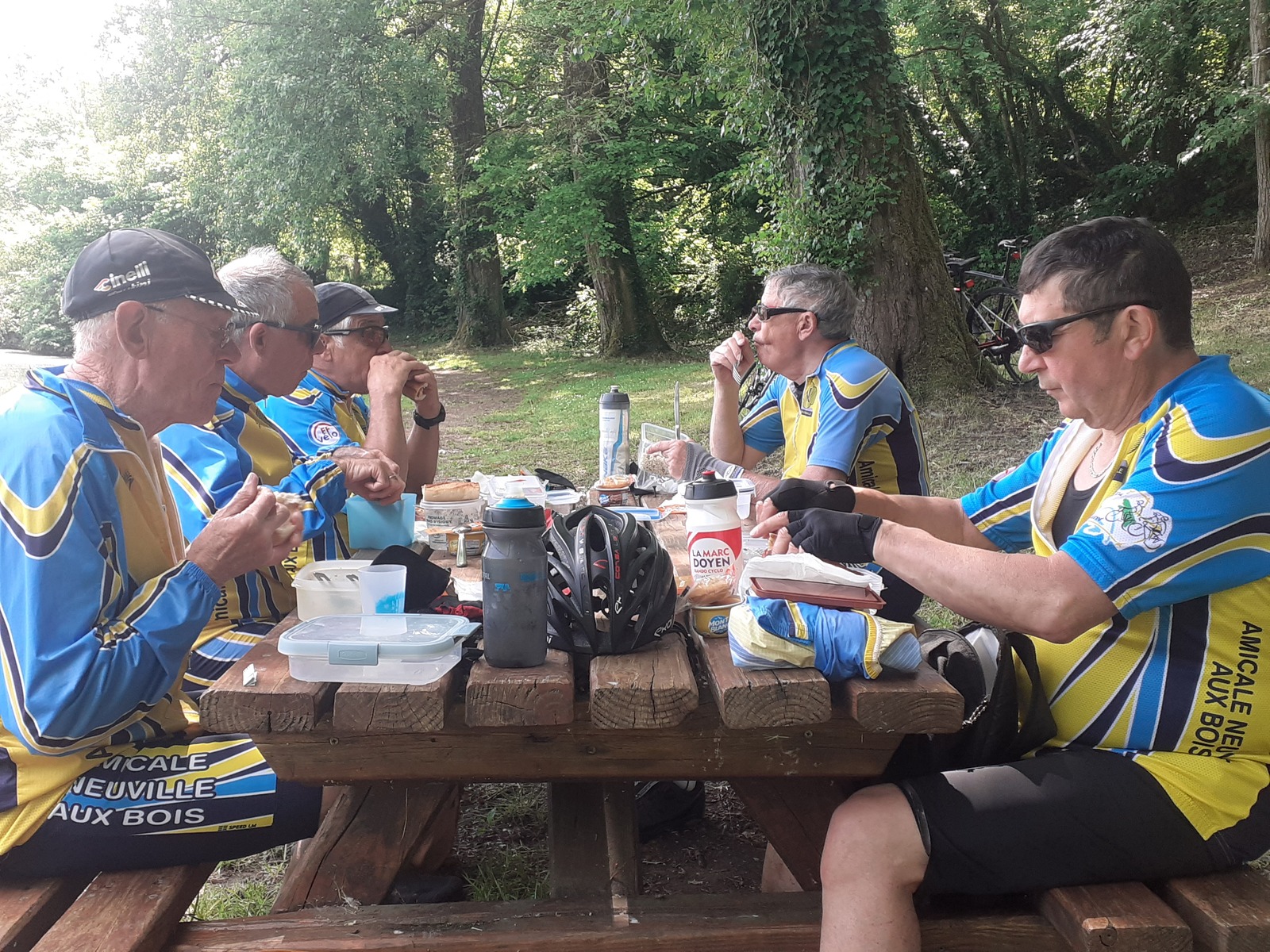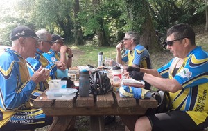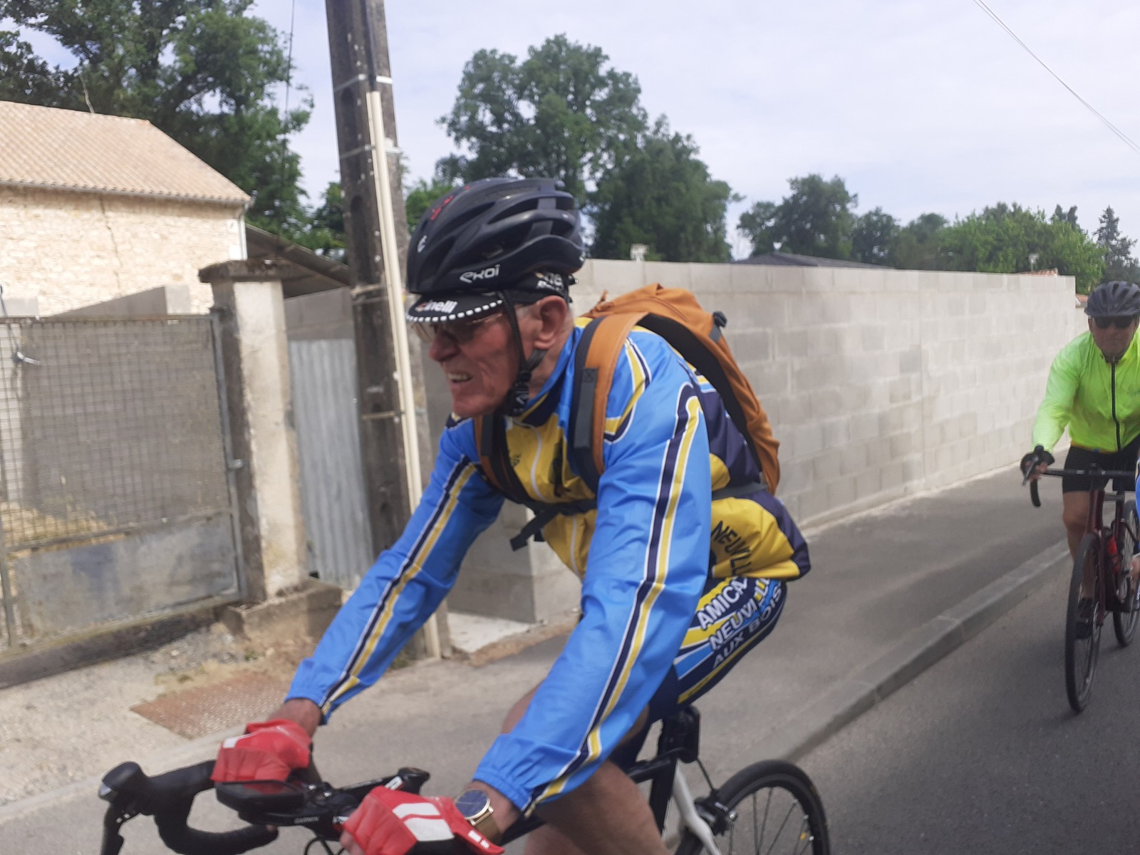 L'organisation se met en place. Le groupe 1 s'élance pour une belle partie de manivelle : 120 km et 1000m de dénivelé prévu. Yves, Jacky, Denis et Jimmes sont déjà partis. Le groupe 2 les suit pour 82 km avec Alain, Didier, Régis, Dominique, Nicolas, Jean-Pierre et Pascal. Traversée de Chauvigny et des ses châteaux (enfin ceux qu'ils restent) son marché et sa préparation de sa randonnée cyclotouriste prévu pour le lendemain ( dimanche 25 mai). Nous longeons la Vienne sans trop trouver de café pour notre pause matinale. Un insouciant Dolmen est là sur le bord de notre route. Civaux arrive avec son curieux cimetière entouré de pierres levées. Nous aurions pu croire être en Angleterre. Civaux son musée Archéologique et son église, nous ne pouvons nous y attarder, l'avant garder a repéré un café. Nous sommes tous déjà assis dans ce commerce aux multiples fonctions : café, épicerie, jeux, boulangerie, dépôt de gaz et retrait de colis. Il ne manquait plus que le retrait d'argent et la réunion du conseil municipal pour être au top. Si les chinois passent par Civaux nous allons être copiés... Repas pris un peu plus loin à Lussac-Les-Châteaux au bord d'un étang avec ombre et table de pic-nique. On peut difficilement faire mieux. Le retour se fait sur des routes tranquilles avec peu de circulation dans de bonnes conditions (température 14 à 20 ; soleil voilé et peu de vent). Pause à La Puye pour y voir passer le groupe 3 des 4C ( Catherine, Chantal, Claire, Cricri) et Véronique. Elles ont pris le temps de visiter le cloître de La Puye et son église. Retour commun et retrouvailles avec le groupe 1 sous la statue de GILBERT BÉCAUD à La Bussière qui avait élu domicile au calme dans cette commune après ses intenses tournées de part le monde. Le dernier groupe ( gr 4), les hédonistes se sont attardés à Chauvigny et à Lussac-Les-Châteaux ( Brigitte, Frédérique et Jean-Claude).