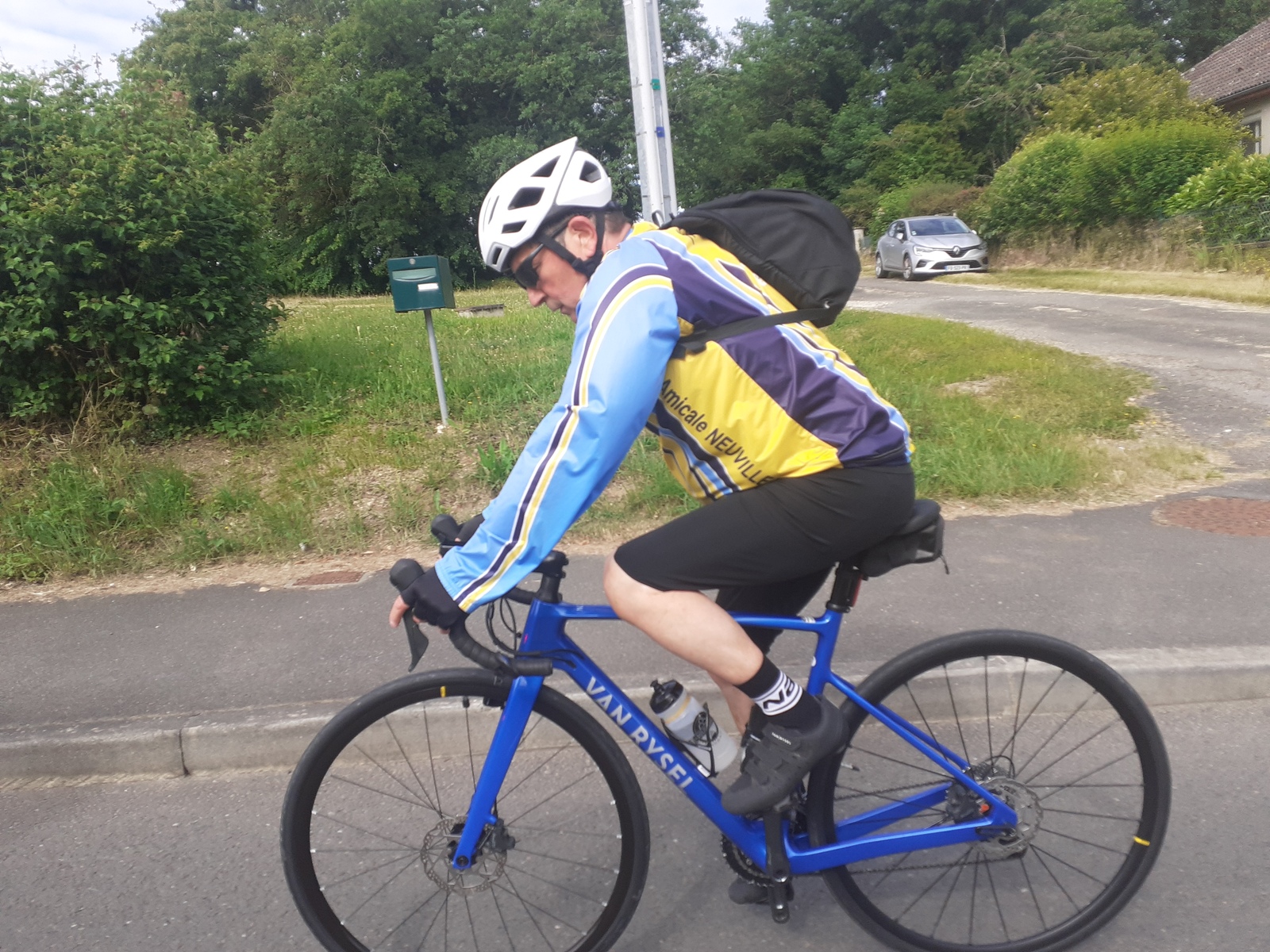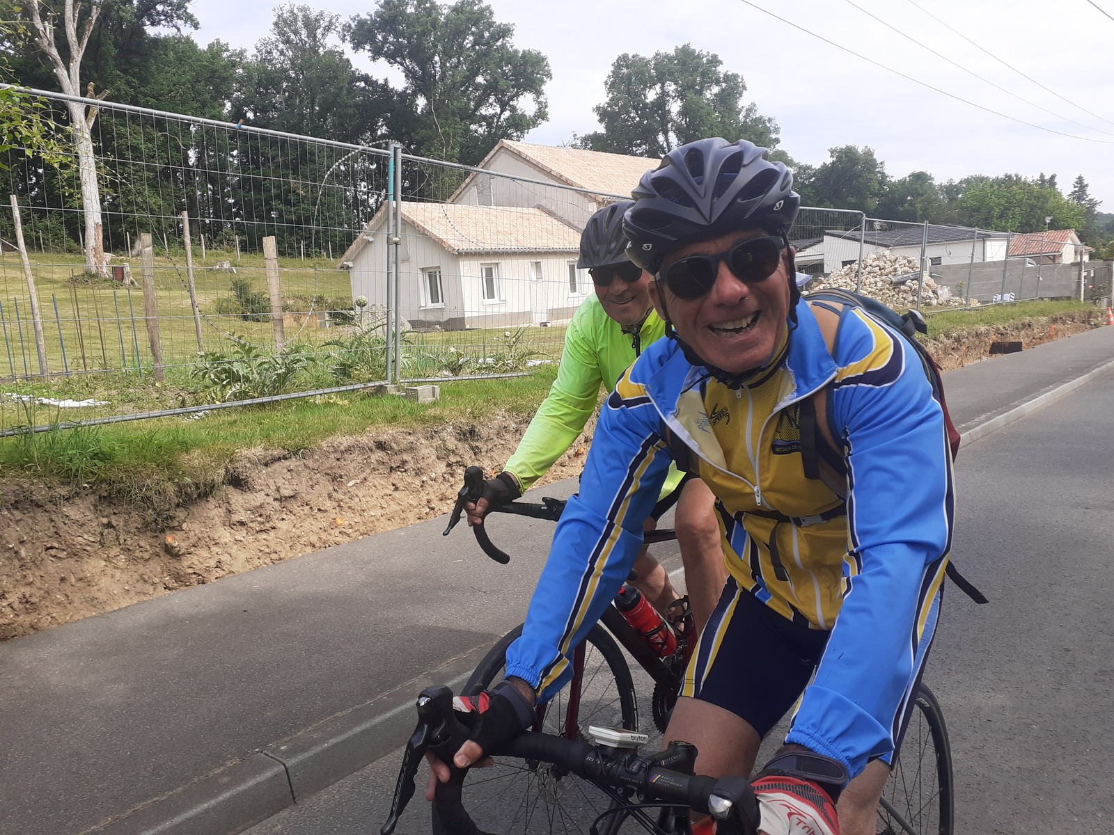 En avançant vers Montmorillon, Nicolas fait une chute sans trop de gravité à l'arrêt qui lui a valu un message d'information à sa femme par son Garmin. Il est au TOP, Nicolas !
