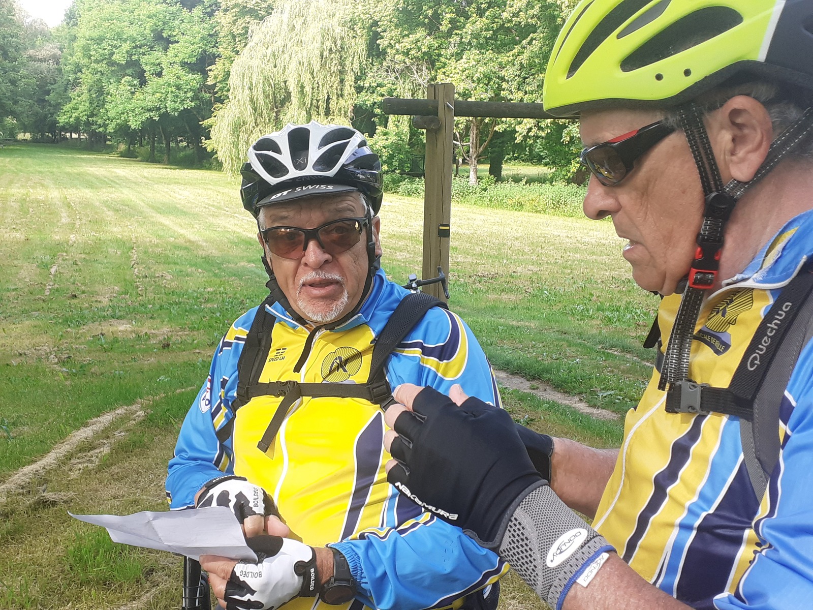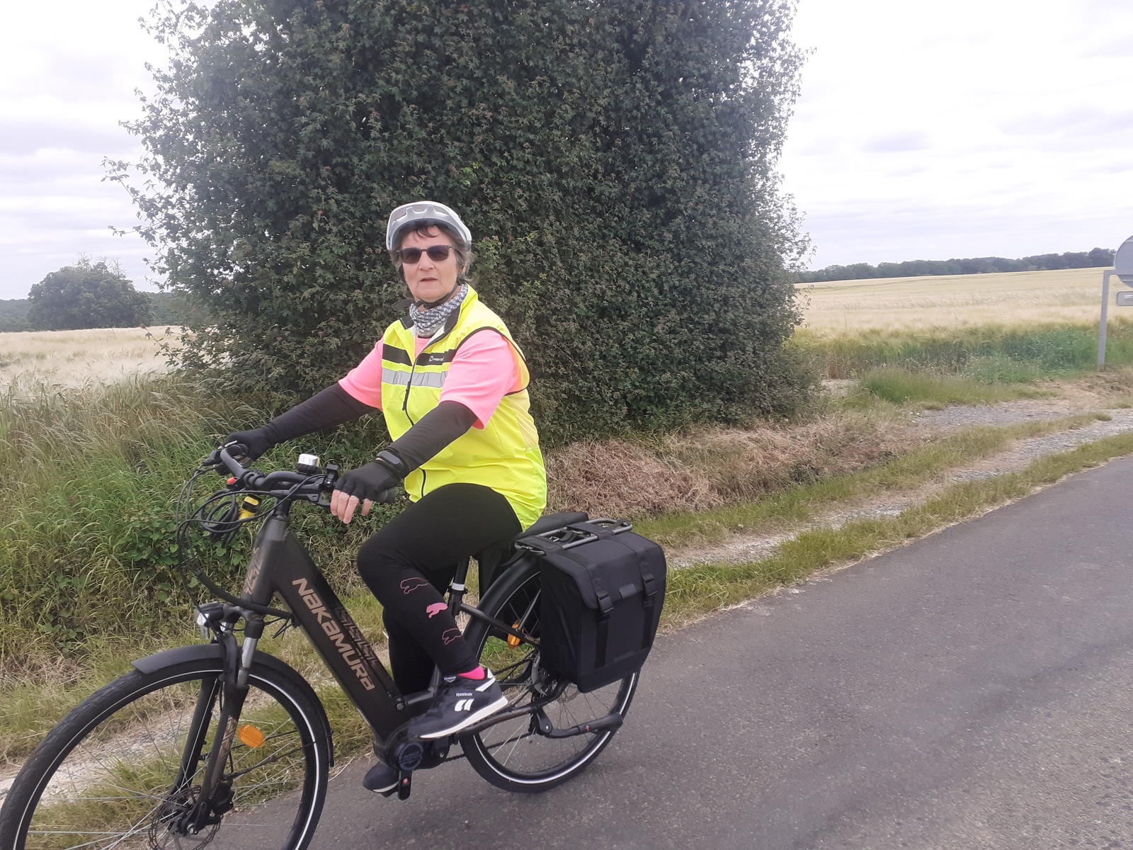 Chantal a maîtrisé un vélo capricieux, son chariot de selle faisait la malle. Elle a réussi à rentrer. Bravo !