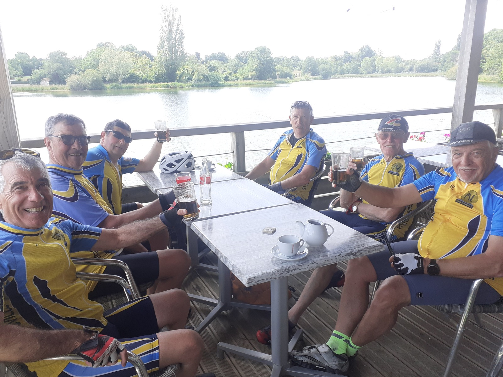 En chemin, pause à LUREUIL ou en ce dimanche une expo d'art ( Peinture, dessin, matelassier, poupées en crochet...) et un salon des écrivains présentant leurs œuvres se tiennent. Plus loin, à l'étang Purais observation de quelques oiseaux rares depuis un lieu fondu dans le paysage. Le temps change, il pleut. La perspicacité de Yves a payé. Il nous a trouvé un café-Restaurant ouvert pour nous mettre à l'abri. Quelle chance ! Jean-Claude qui nous a retrouvé offre une tournée générale : c'est son Anniversaire. Merci Jean-Claude pour ce beau geste.
